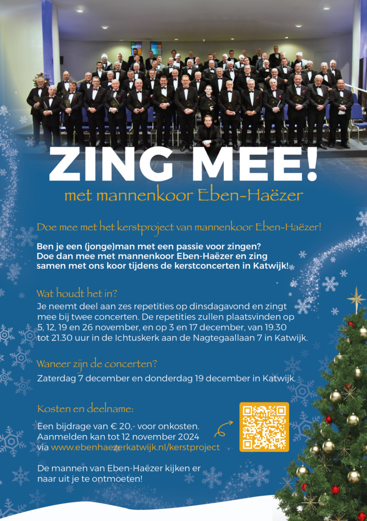 Ook dit jaar bieden we (jonge)mannen die van zingen houden weer de kans om te ervaren hoe fijn zingen op een koor is en mee te werken aan twee schitterende kerstconcerten.